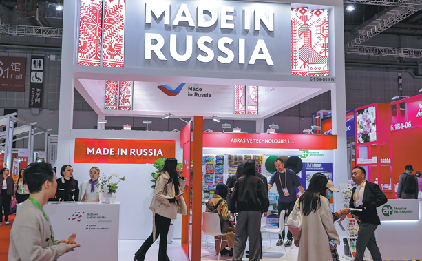 Посетителите проверяват вноса от Русия по време на осмото Китайско международно изложение за внос в Шанхай през ноември. КИТАЙ ДЕЙЛИ