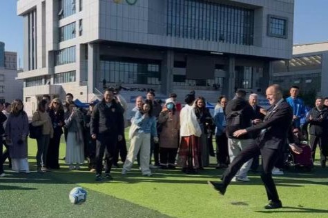 В сряда следобед те посетиха гимназията Yuhuatai в Нанкин, за да гледат футболен мач в кампуса и да общуват с играчи и треньори.