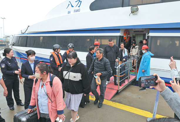 Пътниците слизат от ферибот по маршрута Quanzhou-Jinmen „Mini Three Links“ на пътническия терминал Quanzhou-Jinmen в Quanzhou, провинция Fujian, в петък. JIANG KEHONG/СИНХУА